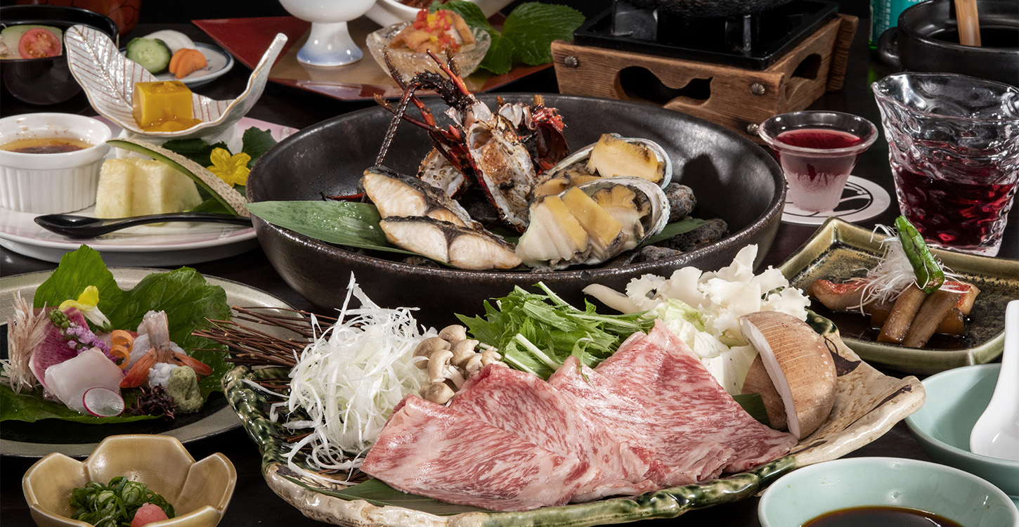 お料理のご案内 安良里港、宇久須港・・・小さな港から、大きな海の恵みを 西伊豆エリアには、未だ、小さな漁船が丁寧に漁をしている、小さな港がたくさんございます。 自然豊かな土地柄、地産地消を実現する農家も多く存在し、四季折々の山海の恵みを私たちに届けてくれています。 至善天遊の料理長「蔦木正道」は、海と釣りをこよなく愛する生粋の料理人。 慣れ親しんだ素材は扱いもお手の物、相性の良いもの同士を合わせ、素朴ながら季節感たっぷりのお料理に仕上げます。 是非、四季の味覚を楽しみに、至善天遊へお越しくださいませ。 【天遊磯会席】 蔦木料理長が目指すのは、「素材」の良さを引き出す一皿。 特に海の素材は、手をかけずに素材の味を楽しむ事も一興ですが、そこは「料理」。 素材同士の組み合わせの妙、相応しい火入れ、そして一味。 「天遊磯会席」は、武骨ながらも正しい仕事で仕上げる。 至善天遊自慢の逸品です。 季節ごとに新しい発見に興じる、夕餉のひと時を大切な方と共に。 いわゆる 「温泉旅館で期待される会席料理」 の枠を超えたお料理を。 私たちは一丸となり、 “御夕食の時間をご滞在のハイライトに” という意識を持ち、その時間に臨んでいます。 お客様お一組様毎のお食事のペース。 お急ぎのお客様 ゆっくりと時間を楽しまれるお客様 その空間を遮ることのない、 適切なサービスを提供いたします。 お料理別 ご予約プランへ 【料理を支える3つのこだわり】 出汁と塩 和食の要は「出汁」と「塩」。実は西伊豆エリアは「鰹節」と「天然塩」の名産地でもあります。 ここ天遊でも、地物素材と合わせるのはいずれも西伊豆産。故郷が同じ素材同士は、やはり阿吽の呼吸で味が決まります。 伊豆そのものを体現したような一皿を楽しみに、是非お出かけください。 伊豆の四季 複雑な海底地形を持つ駿河湾、肥沃な伊豆の大地。 素材を調達するうえで、ここ伊豆半島はこの上なく恵まれています。 四季折々の美味しい恵み・・・身体にも舌にも、「旬」は優しく寄り添います。 天遊の料理のベースには、伊豆の四季を色濃く感じていただける楽しみが満載です。 自らの目で、手で 海の美味しいものを知り尽くしているのは、海と釣りへの熱意がやまない蔦木料理長ならではではないでしょうか。 メインになりうる食材はもちろんですが、海藻やお野菜、お料理の添え物も自ら海へ山へ出向き、時に収穫と下ごしらえまでこなします。 美しいお料理の源は、武骨な手による職人気質にありました。 至善天遊 料理長 蔦木正道 海と釣りをこよなく愛する、30代の若き料理人。 釣り好きが嵩じて料理人を目指す。 海辺の宿を中心に修業時代を過ごし、研鑽を重ねた後、2025年春より至善天遊の料理長へ就任。 休日のみならず、仕事以外の空き時間も海と板場を往復するような生活で、季節に関わらずその成果をお客様に味わっていただく事が大きな楽しみとの事。 至善天遊の料理長として、日々遊び心溢れる新メニュー開発への熱意もさることながら、良い釣り場が多い西伊豆エリアで、釣りをしたいがために至善天遊の料理長になったのでは・・・という疑念もぬぐえない。 別注料理 ■ 伊勢エビ料理 「お造り」または「焼き物」 ¥4,400- 活伊勢エビをお好みの調理法にてご提供いたします。 ■ アワビ料理:バター焼き、踊焼き、お造り ¥3,300- ■ 牛ステーキ120g(陶板焼き) ¥3,300- ■ ウツボのから揚げ★おススメ★ ¥2,750- ■ 記念日:フルーツタルト 4号12センチ:3,300円 5号15センチ:5,500円 ※メッセージプレート付 ※ろうそく6本以上は1本10円追加 ■ 記念日:デコレーションケーキ 4号12センチ:4,400円 5号15センチ:5,500円 ※メッセージプレート付 ※ろうそく6本以上は1本10円追加 お食事処 【個室風食事処「水鏡」】 各室が壁と暖簾で仕切られており、周囲を気にすることなく、気兼ねなくお食事をお楽しみいただけます。 ※お食事処はご予約プランや人数等により、当宿にお任せいただいております。 【個室食事処「大鏡」】 様々なタイプの個室食事処は全5室。 それぞれ趣の異なる落ち着いたインテリアでお食事のお時間を彩ります。 ※お食事処はご予約プランや人数等により、当宿にお任せいただいております。